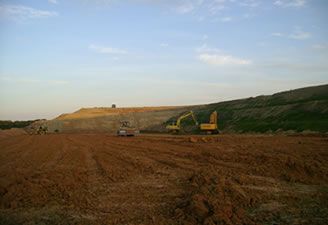 - Aterro e camada de impermeabilização de base