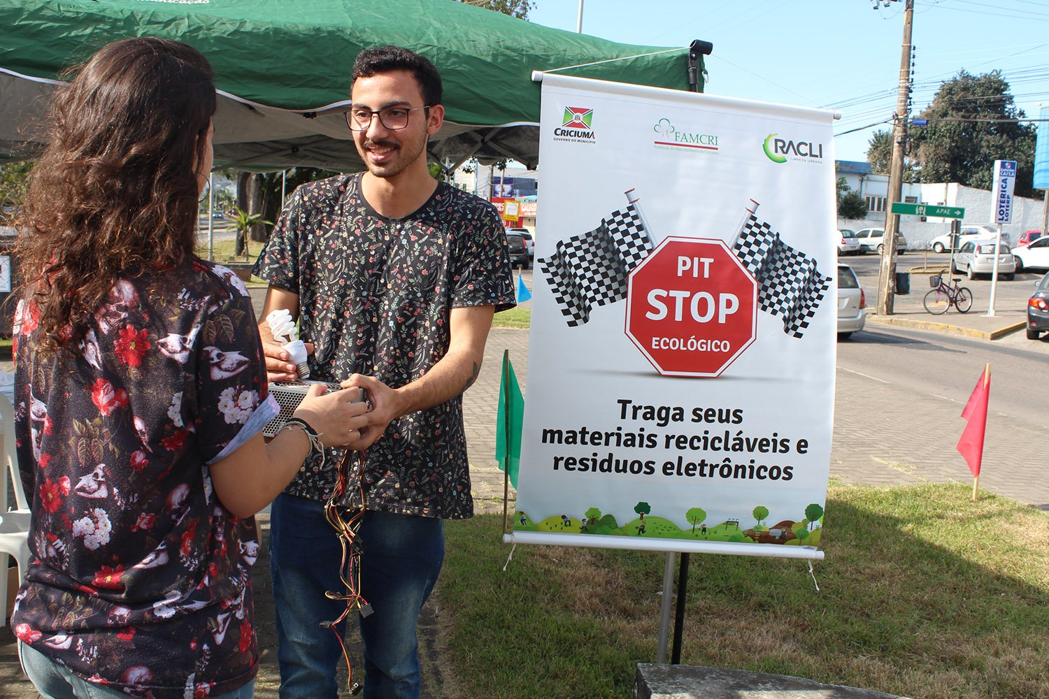 A Praça Sebastião Toledo dos Santos, no Bairro Pinheirinho recebeu nesta segunda-feira, dia 26, das 9h às 16h, a primeira edição do “Pit Stop Ecológico”. A iniciativa promovida pela Fundação do Meio Ambiente de Criciúma (Famcri), conta com o apoio da Racli e da RAC e tem o principal objetivo de promover a conscientização sobre a destinação correta dos resíduos.